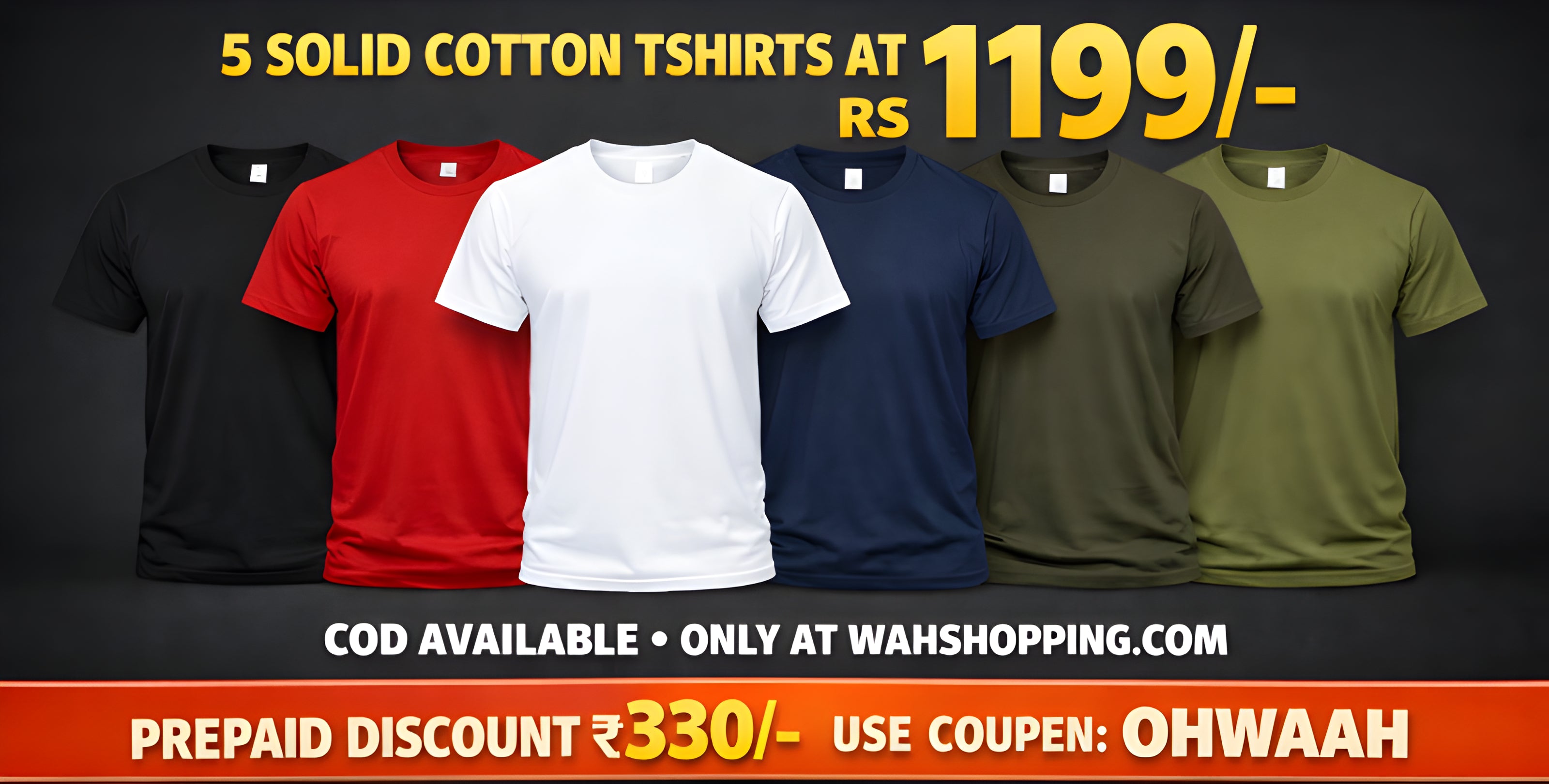Combo of five 5 Heavy cotton black, red, blue, white, grey